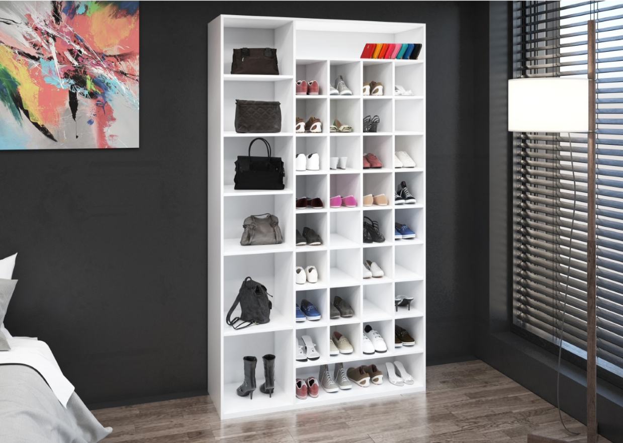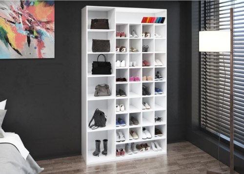 Consta de 6 entrepaños más espaciosos para el resguardo y cuidado de tus bolsas y botas también consta de 10 entrepaños más reducidos que te permiten guardar hasta 32 pares de